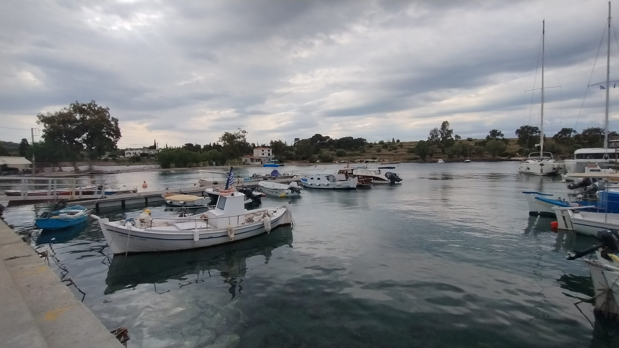 Ο ουρανός, ντυμένος με πέπλο σύννεφων, άφηνε δειλά τις αχτίδες του ήλιου να χαϊδέψουν τα κτίρια, να σμίξουν με το απέραντο γαλάζιο του Σαρωνικού. Η πόλη απλωνόταν σαν αέναο κύμα από σπίτια, δρόμους και μνήμες, φτάνοντας ως την αγκαλιά της θάλασσας.